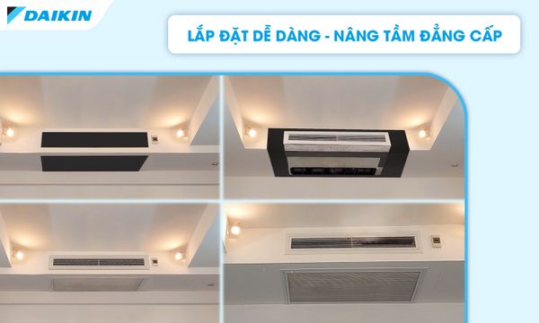 Việc lắp đặt này thích hợp cho các phòng khách với trần nhà thấp hoặc không gian nội thất cần giấu dàn lạnh. Các dòng FDLF có chiều rộng 900 và 1,100 mm và giúp cho các dàn lạnh này trở nên lý tưởng trong các không gian hẹp.