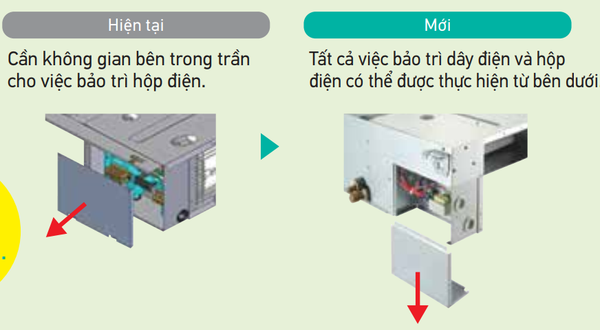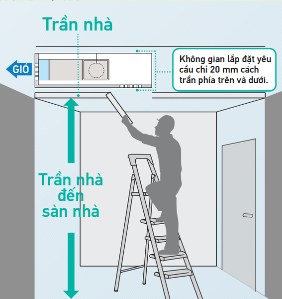 Tất cả các dòng có chiều cao 200 mm cần không gian chỉ 240 mm từ vị trí trần treo và phần trần nhà trống. Với những kích thước nhỏ gọn này, bất kỳ dàn lạnh nào cũng có thể dễ dàng lắp đặt trên các trần nhà hẹp.Loại dàn lạnh nối ống gió mỏng có thể được giấu bên trong trần nhà giúp không gian bên ngoài gọn gàng.