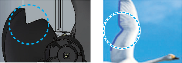 Việc sử dụng cánh quạt chân vịt có khía chữ V mô phỏng hiệu suất hoạt động của cánh loài thiên nga, điều này giúp cho lượng gió đều và không bị thất thoát.