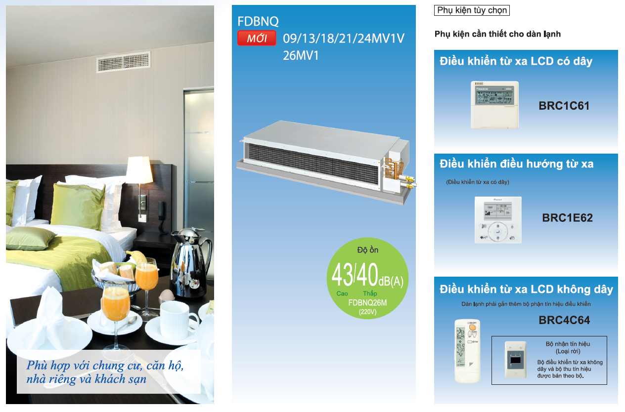 THÔNG SỐ KỸ THUẬT MÁY DAIKIN GIẤU TRẦN NỐI ỐNG GIÓ FDBNQ – ÁP SUẤT TĨNH THẤP