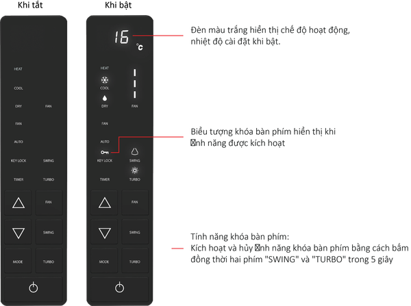 Đường nét thời trang với bảng điều khiển sang trọng. Độ bóng hoàn thiện cao tạo bầu không khí hiện đại và tinh tế. Bảng điều khiển màu đen thời trang với đèn LED màu trắng cho màn hình hiển thị rõ ràng sắc nét. Nút lớn dễ sử dụng . Khi BẬT máy, đèn hiển thị chế độ và nhiệt độ cài đặt