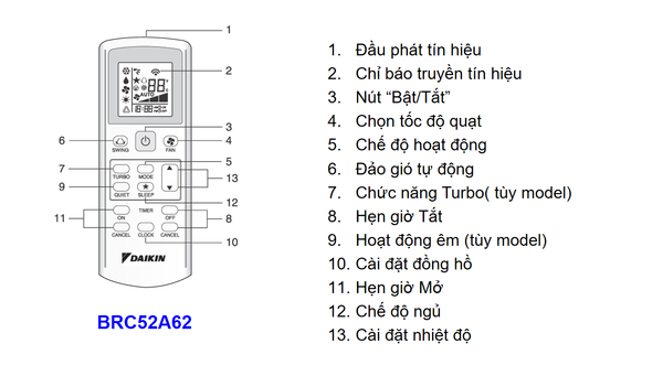 Bộ điều khiển không dây BRC52A62 (kèm thiết bị)