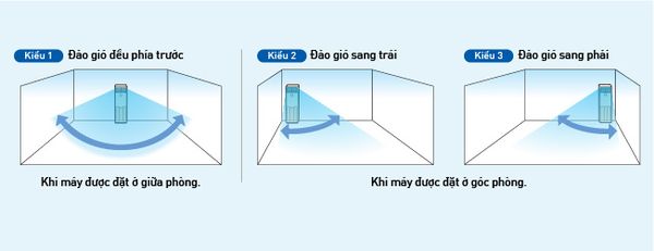 Có thể chọn 3 kiểu đảo gió tự động để phù hợp với mỗi kiểu phòng.